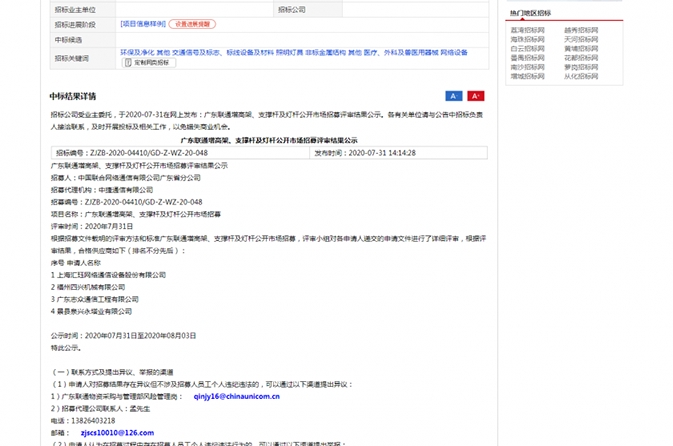 我公司于2020年7月31日入圍廣東聯通